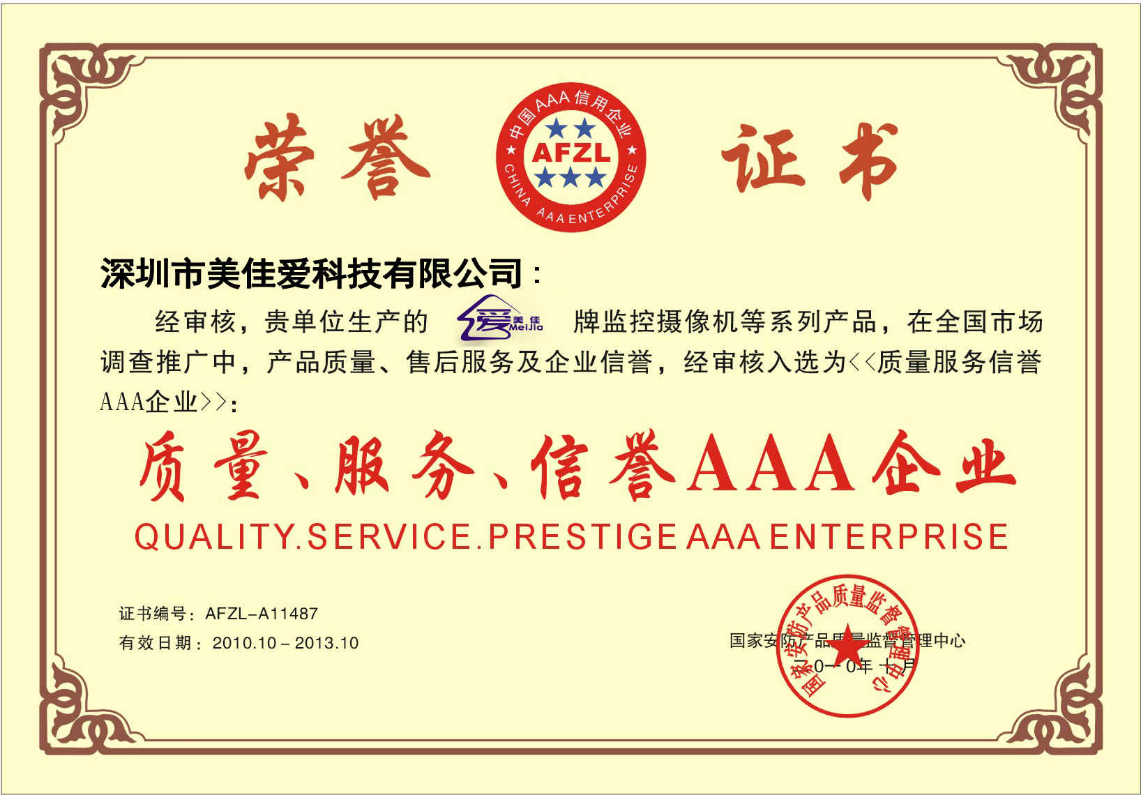 全國(guó)安防質(zhì)量信得過企業(yè)證書副本